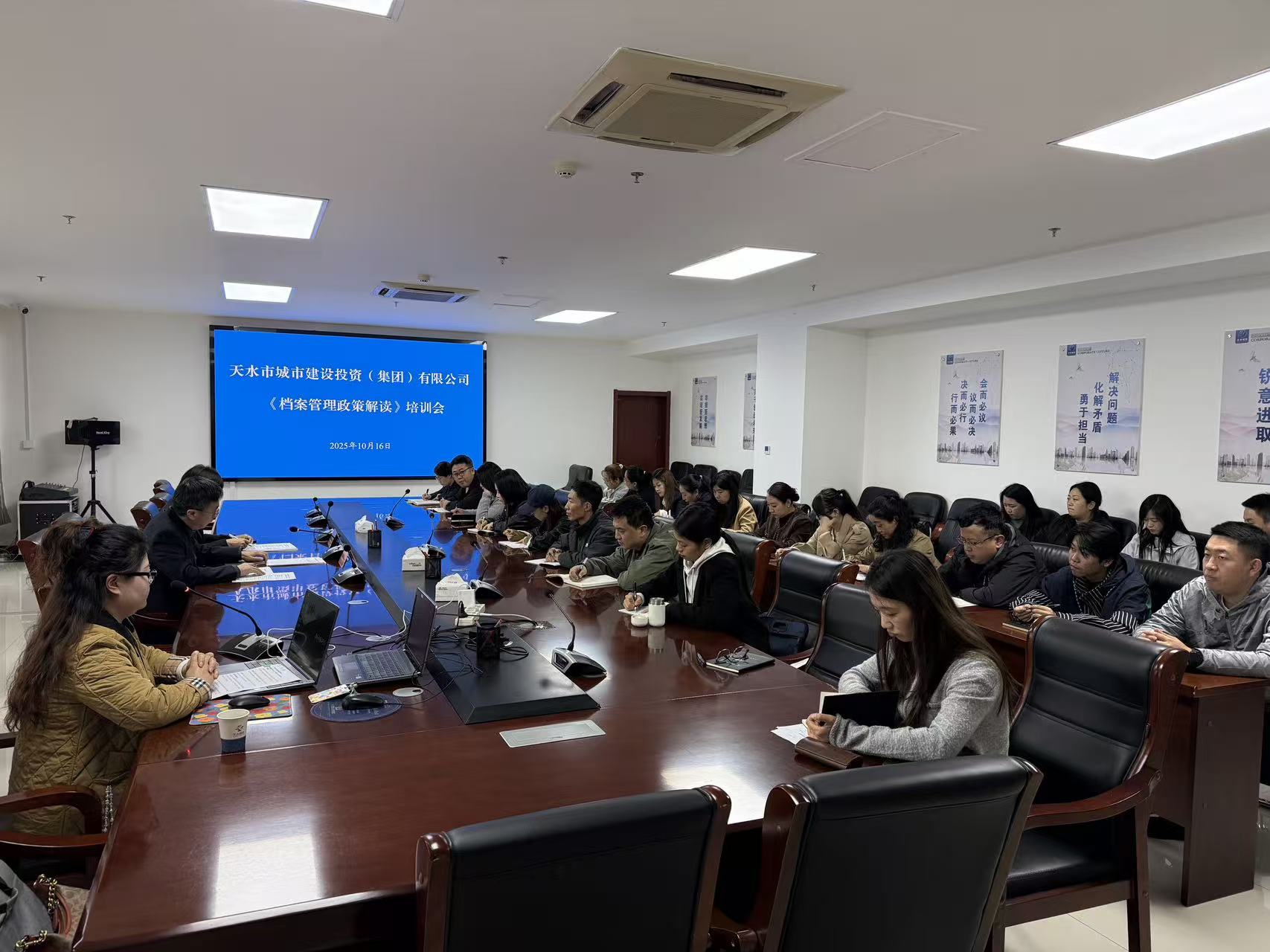 10月16日下午,為進(jìn)一步提升公司檔案管理水平,規(guī)范檔案收集、整理、歸檔與利用流程,市城投公司組織舉辦檔案管理專題培訓(xùn)會(huì)。會(huì)議特邀全國(guó)職業(yè)資格認(rèn)證中心高級(jí)檔案管理師吳珊擔(dān)任主講嘉賓。公司各部室、各子公司檔案管理相關(guān)人員共30余人參加培訓(xùn)。培訓(xùn)會(huì)上,吳珊老師結(jié)合多年檔案管理實(shí)務(wù)經(jīng)驗(yàn),圍繞《檔案法》《企業(yè)檔案管理規(guī)定》等法……